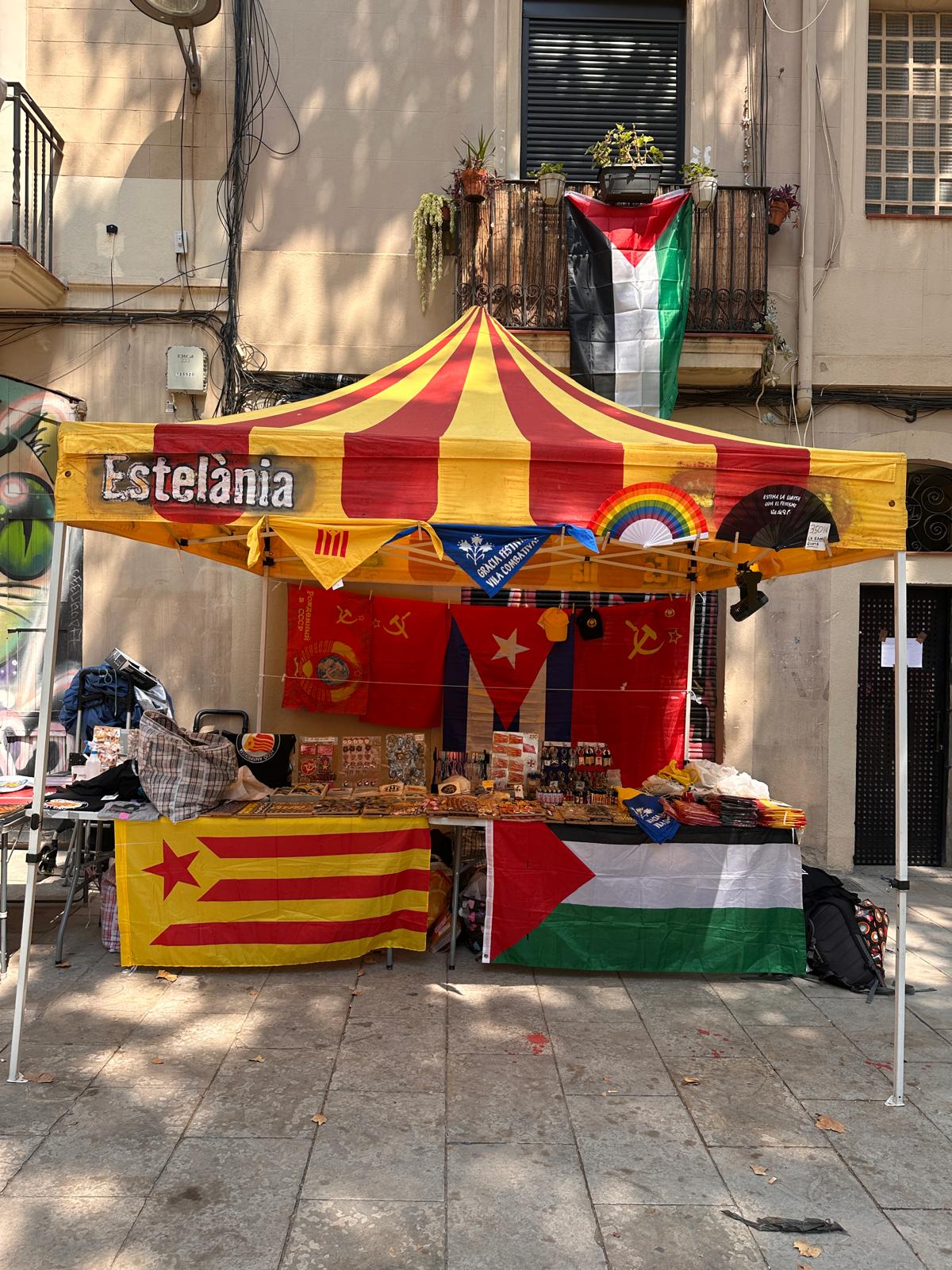 Se llaman Estelània. Desde hace unos años este tenderete participa en Gràcia y en varias fiestas populares de Cataluña. Todo legal. Incluso han sido invitados en las mañanas de TV3, la televisión pública de Cataluña. Todo en regla.